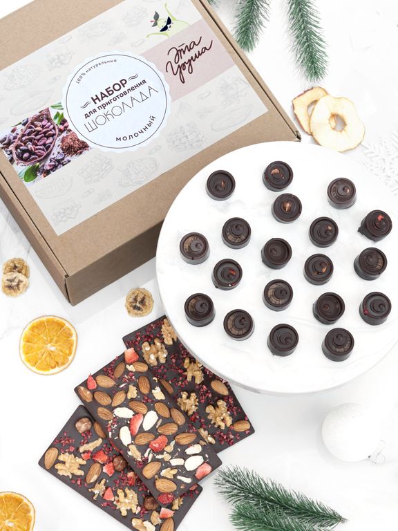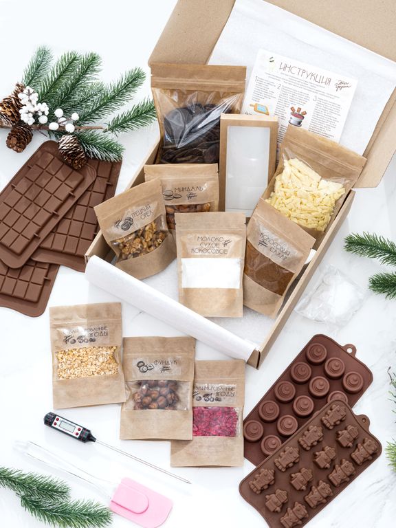 В набор входит все необходимое для приготовления шоколада в домашних условиях.
